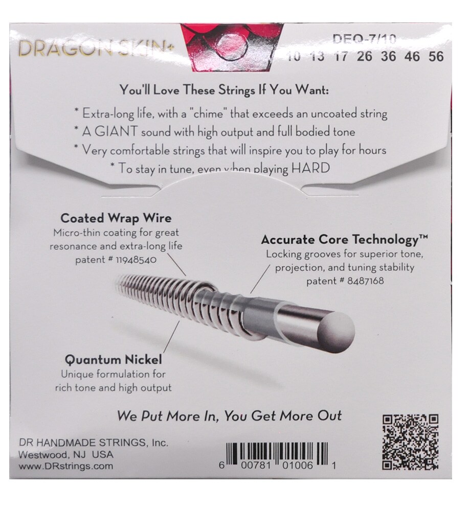 DR Stringsは、正直なところ、ほとんどずっと使い続けています。90年代初頭にギターを始めた頃は、色々なブランドを試しましたが、DRを試した瞬間、『これだ!』って確信しましたね。 弾き心地もサウンドも完璧で、チューニングも本当に良く安定してくれます。特に気に入っているのはTite-Fitsと、新しいDragon Skin+シリーズです。