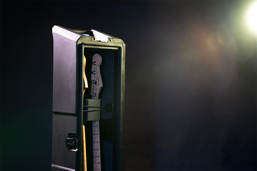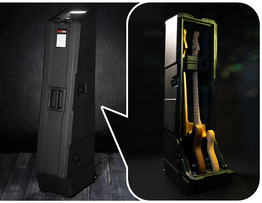 This hard case for basses can hold two electric basses. It can also be used as a guitar rack and is compatible with Precision Bass, Jazz Bass, Stingray Bass, etc.