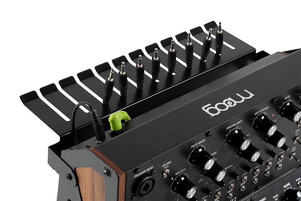 Attach the included cable hanger to the 3-tier rack to neatly store patch cables for a stress-free workflow. A custom set of patch cables comes with carefully selected lengths and numbers to maximize the “patchability” of the system.