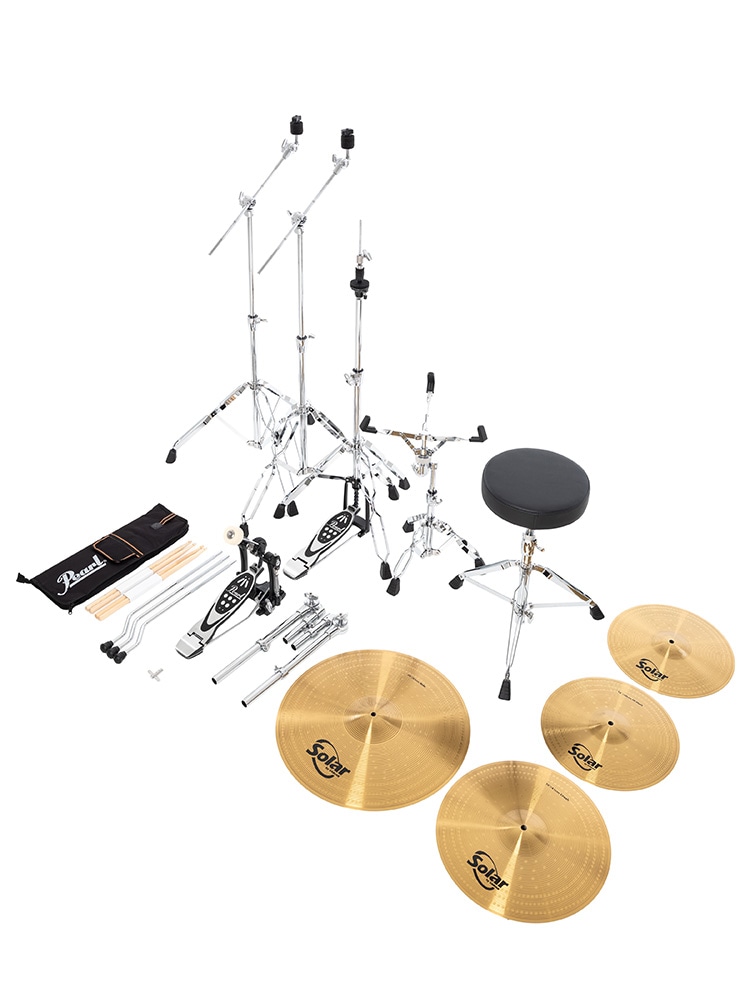 基本的なビートの習得に最適で、さまざまなリズムパターンやアクセントにも対応できるサイズのシンバルをパッケージ。