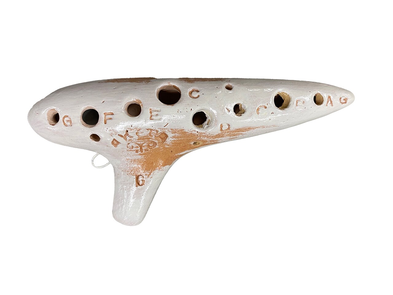 Soprano ocarina by Aketa Ocarina. The Larigo was invented by Ocarina's father, Takashi Aketagawa, inspired by a cigar. The instrument has an elongated shape and produces a highly overtone so. It is said to have the clearest tone of the ocarina group. ‘X model’ with some modifications to the fingering of the aketa, in the key of G.