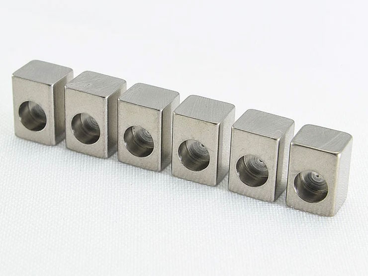 Ti-Block / Insert Block for Floyd Rose Style Tremolo 7-piece is a titanium insert block designed to fit the new Floyd Rose original specification saddle. Equipped with KTS's titanium insert block, it adds a bright and warm tone with a bright feel and a plump midrange to the guitar.