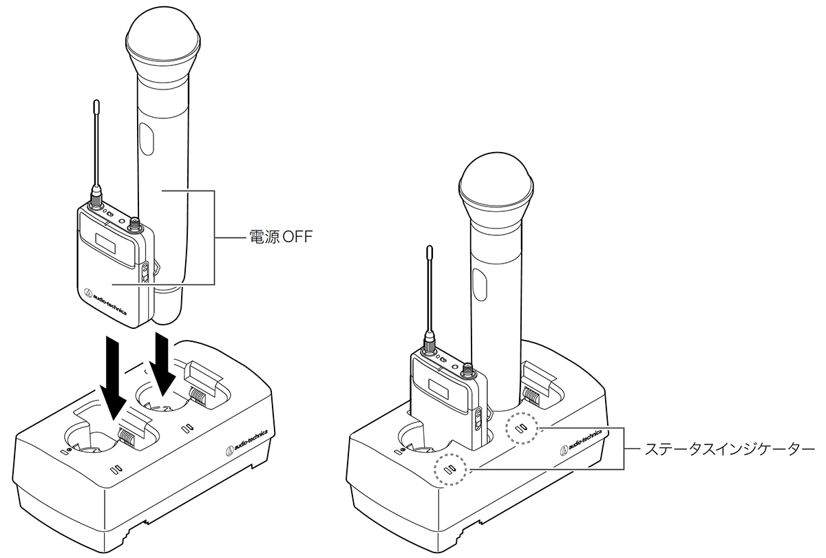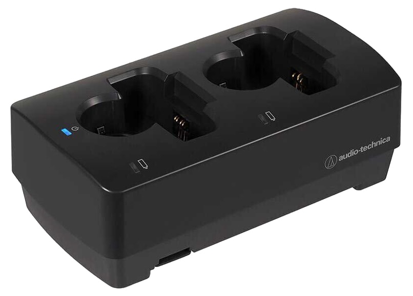 Charger for audio technica 3000 digital series and SYSTEM20PRO series. Up to 5 units can be connected. 2-channel charger for transmitter/stereo receiver.