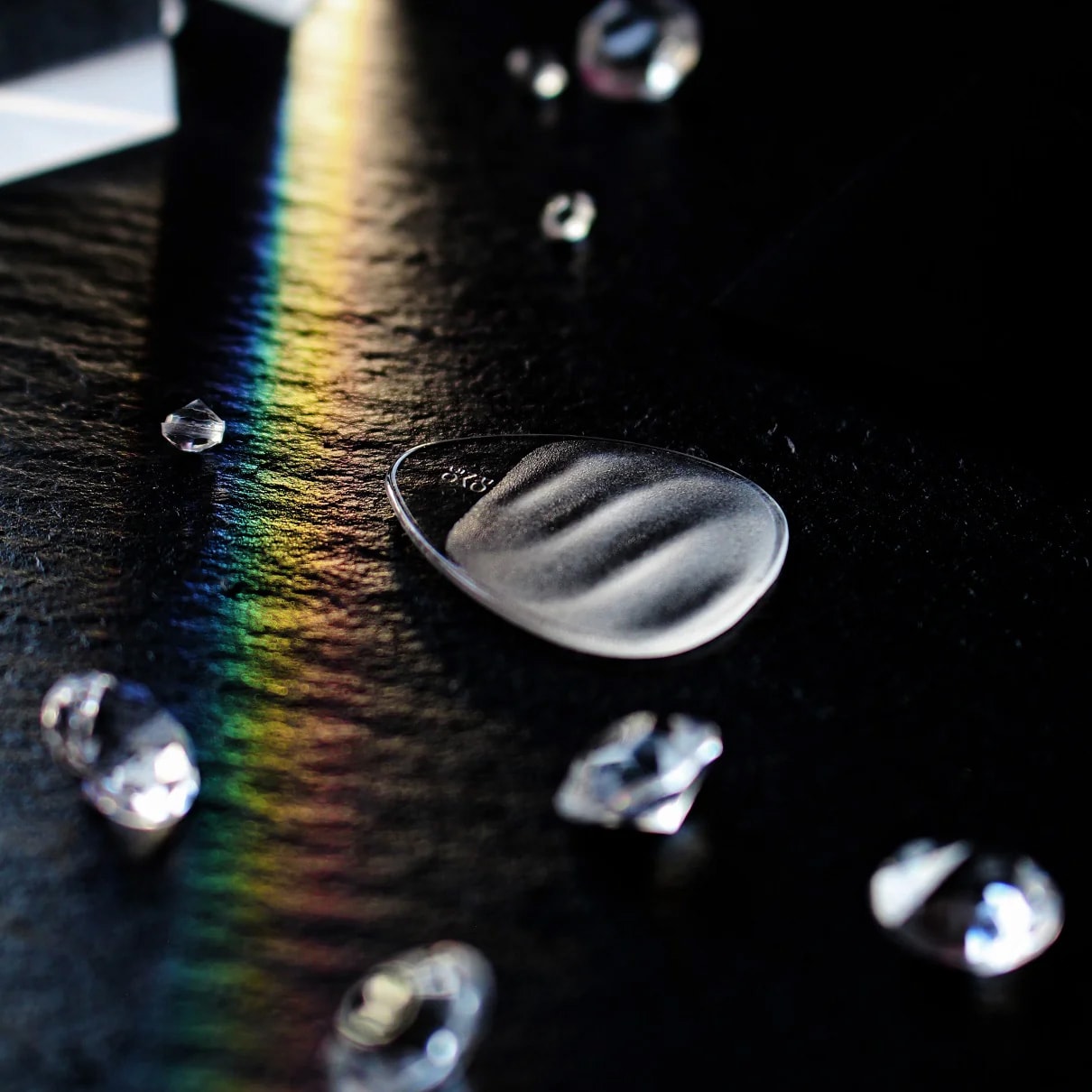 Introducing a pick made of CrystalBright material that took 12 months to develop! The pick is made of ""CrystalBright"" material with improved abrasion resistance and surface hardness, and a new formulation provides bright tones and amazing durability. CrystalBright has an amorphous structure that transmits light without diffraction, and boasts a light transmittance of approximately 92%, which is higher than standard glass.