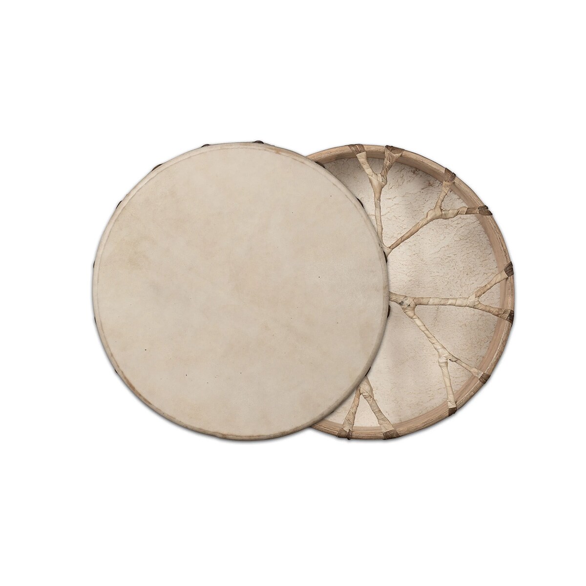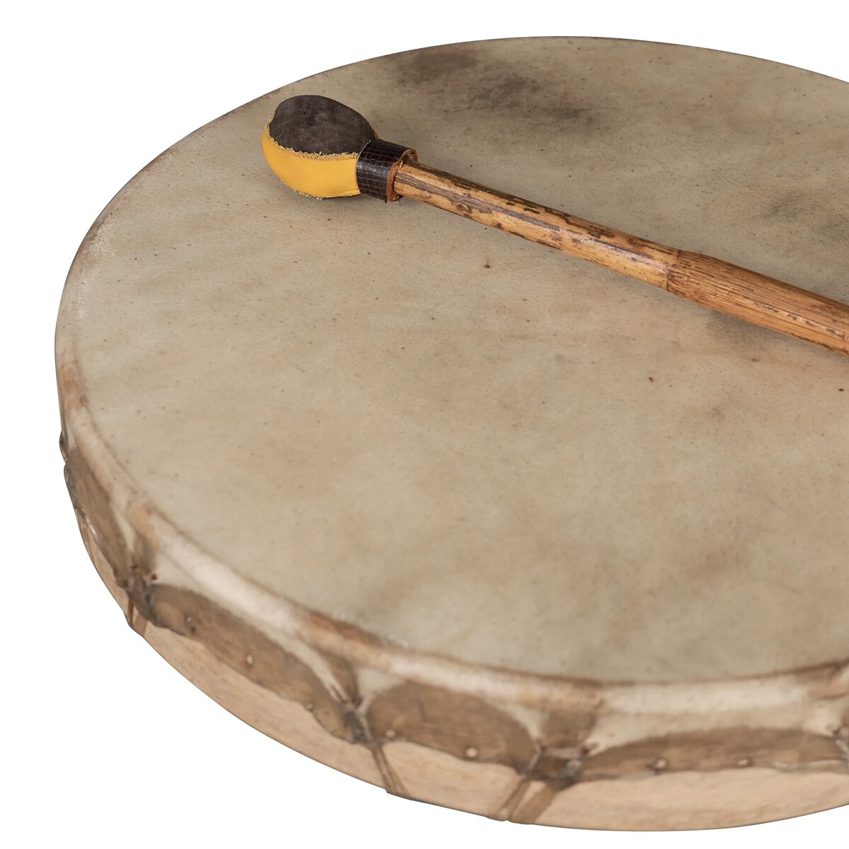 The shamanic frame drum from SELA CAJON. Handmade in India to revive the power of ancient sounds in the modern age. The sturdy wooden frame is covered with goat skin, and it produces a deep sound that is perfect for shamanic rituals, meditation, healing, and more. The natural materials and careful craftsmanship bring a rich rhythm to the sound.