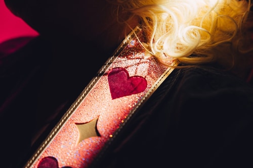 鮮やかなピンクにハートをあしらった大胆なデザイン