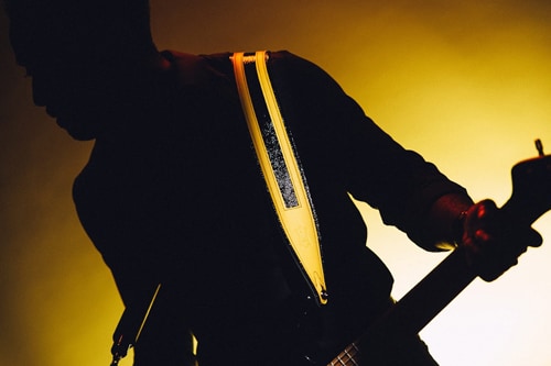 実際に手に取ると、ブラック部分がかなり光沢感のある柔らかいビニールレザーのようで惹かれる1本!イエロー部分とは素材違いで、とてもファッショナブルなストラップです。まさにアメリカのメトロポリスを感じます。気になる使用感はさすがLEVY'S。幅が約6.35cmと広めの仕様となっており、縫い目も丈夫で安定感は抜群!座奏でも立奏でも調整が効く長さも嬉しいですね。