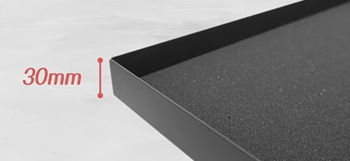 約30mmの縁取りを採用し、スティックやマイクなどの転がりを防止。移動やセッティング時も安心してお使いいただけます。