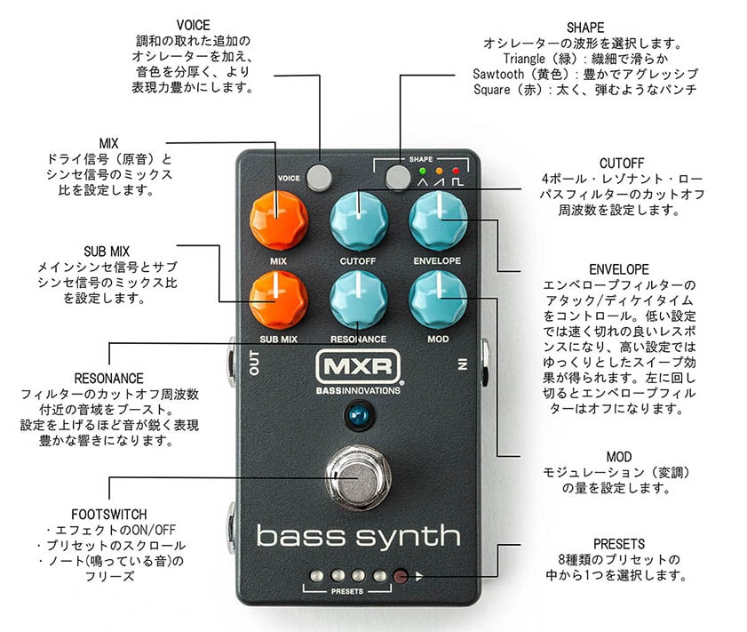A compact envelope filter that reproduces the classic BASSBALL bass effect. Both the controls and sound are faithfully reproduced. The twin dynamic filters transform the sound of instruments into vocals, creating a powerful bass sound. Can be used with bass and guitar.