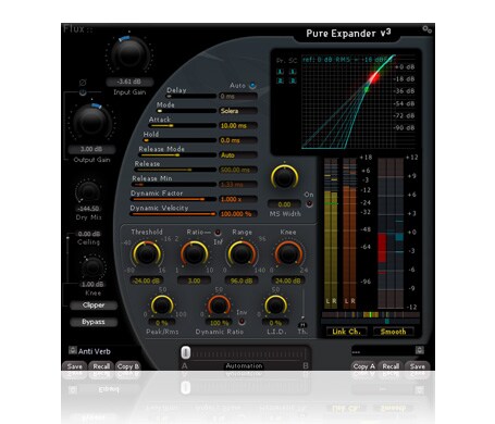 The Solera II expander section is provided as a standalone plug-in. It suppresses unwanted elements such as noise, reverb tails, and bleed from other microphones without degrading the original sound. It also features FLUX's proprietary ""Angel's Share"" and ""Hysteresis.""