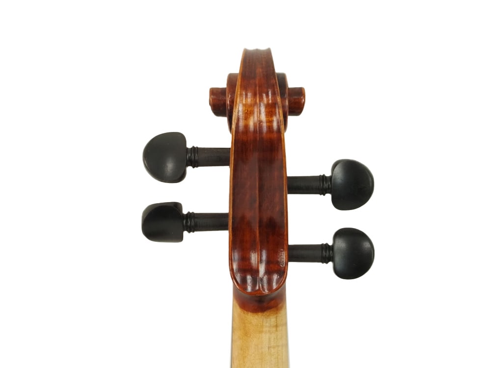 PLAYTECHより入門~中上級者の要求まで応えるミドルグレードバイオリンPVN644が新登場!深く奥深い印象を与える落ち着いた濃淡のあるブラウンが特徴で、表板はスプルース単板。側板、裏板はメイプル単板仕様。よく目を凝らしてみてみると木目もしっかり出ているのを確認いただけます。本格的なニス仕上げとなっており、奥行きのある響きをお楽しみください。初心者はもちろん、音楽教室に通われている方や、経験者にもおすすめのバイオリンです。