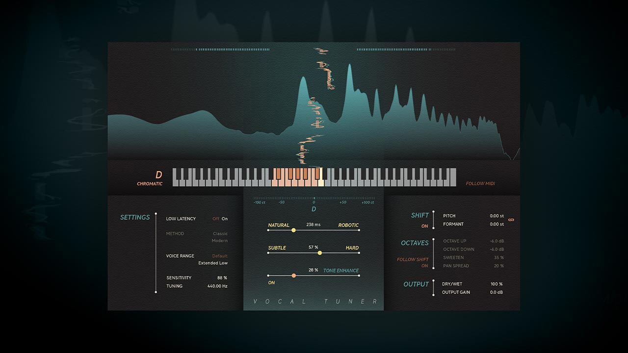 With a low-latency mode to aid tracking, accurate meters that show how processing affects the input signal, and two different pitch correction methods, Vocal Tuner lets users achieve the highest quality vocals and more in seconds.