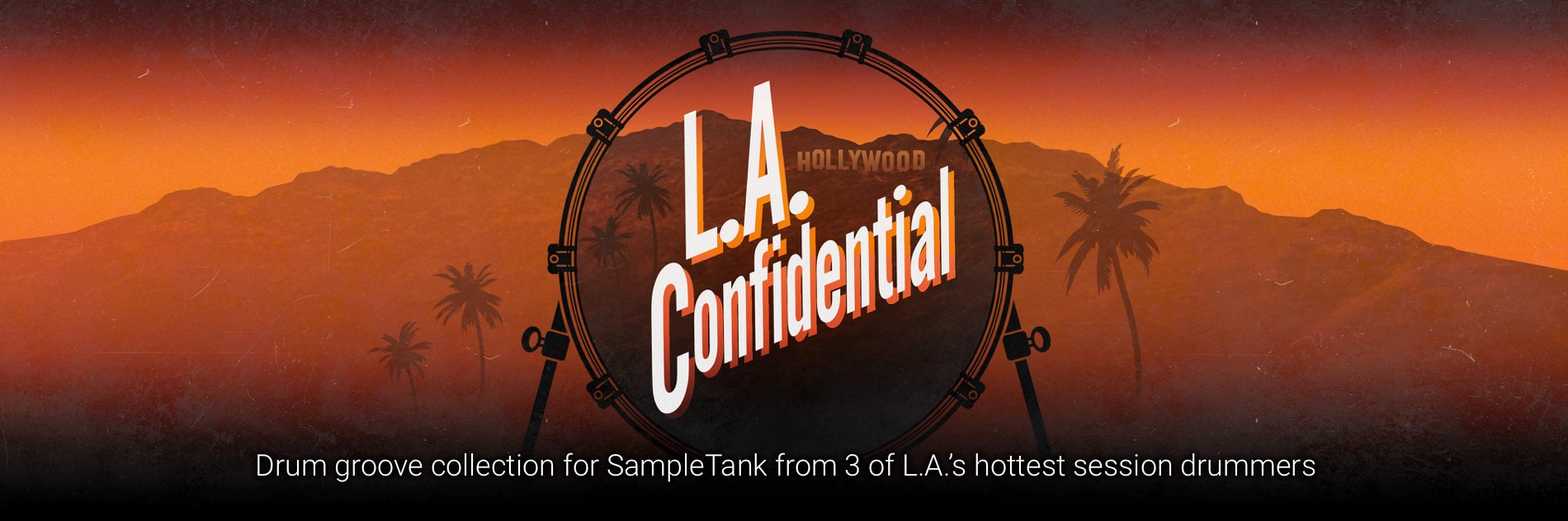 L.A. Confidential is a drum loop collection recorded in an L.A. studio by Filippo Gaetani, a producer who has worked with Miles Davis, Sting, Gil Evans, and others and has won numerous awards, including MTV Indie Pop Ourstage. He teamed up with three accomplished L.A. session drummers: Fernando Sanchez (Chris Cornell, Luis Fonsi, Christina Perri), Kelly Scott (Queens of the Stone Age, Faith Hill, P!nk), and Tim Dow (Pete Yorn, Year of the Rabbit, Shiner). The collection totals over 10GB and contains over 2,000 grooves, brimming with the smooth grooves and alternative rock feel of the '70s. Each groove includes stereo dry, stereo wet, and multi-track stems, as well as multiple loops and WAV files.