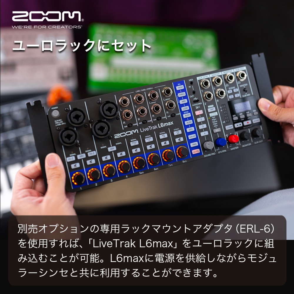 ◎ The rack mount adapter (ERL-6) is sold separately to allow the LiveTrak L6max to be installed in a Eurorack enclosure