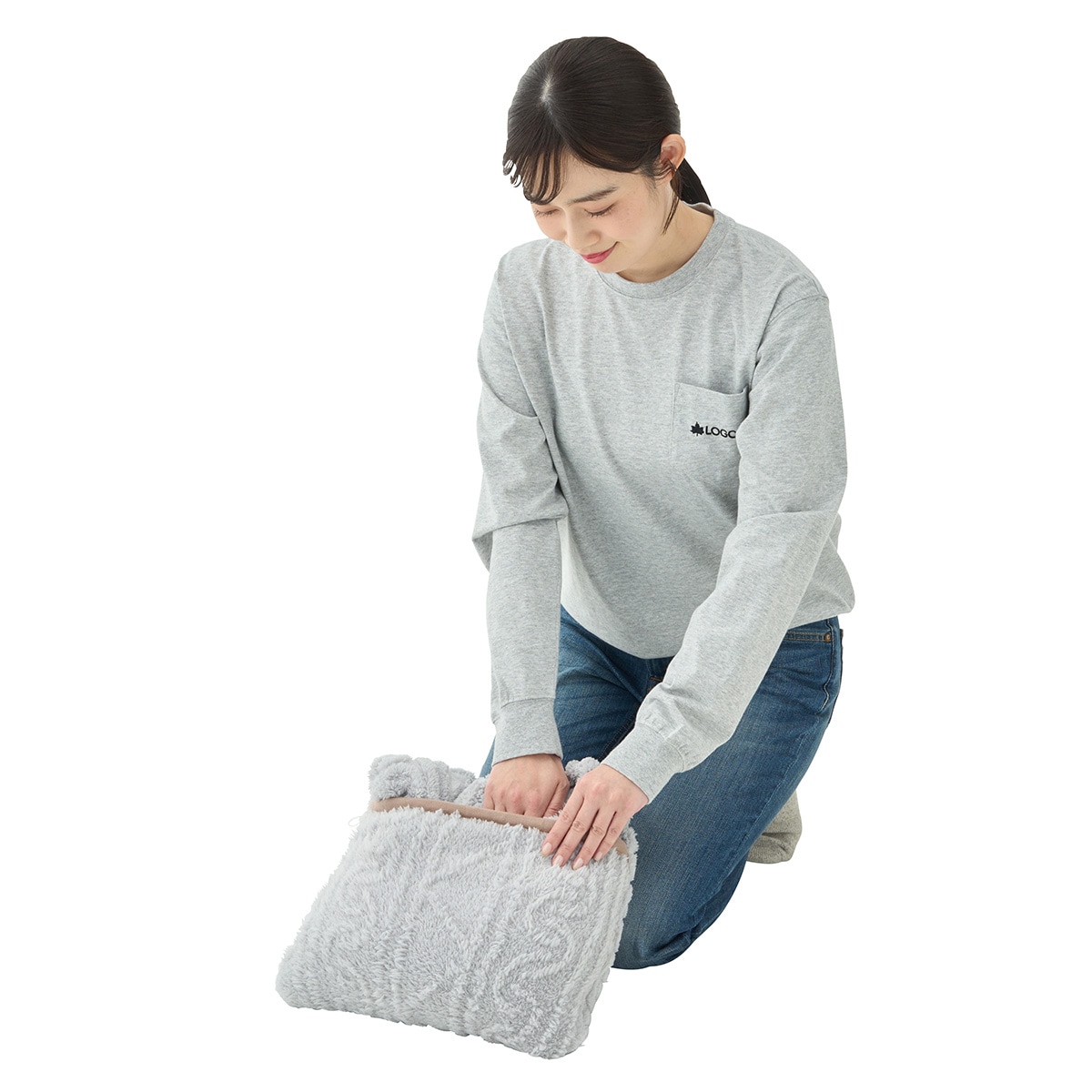 Available in three colors: Pink, Gray, and Navy, so you can choose your favorite. The blanket also features a large pocket on the back. When not in use, it can be folded for storage or used as a cushion, offering a convenient 2-in-1 design.