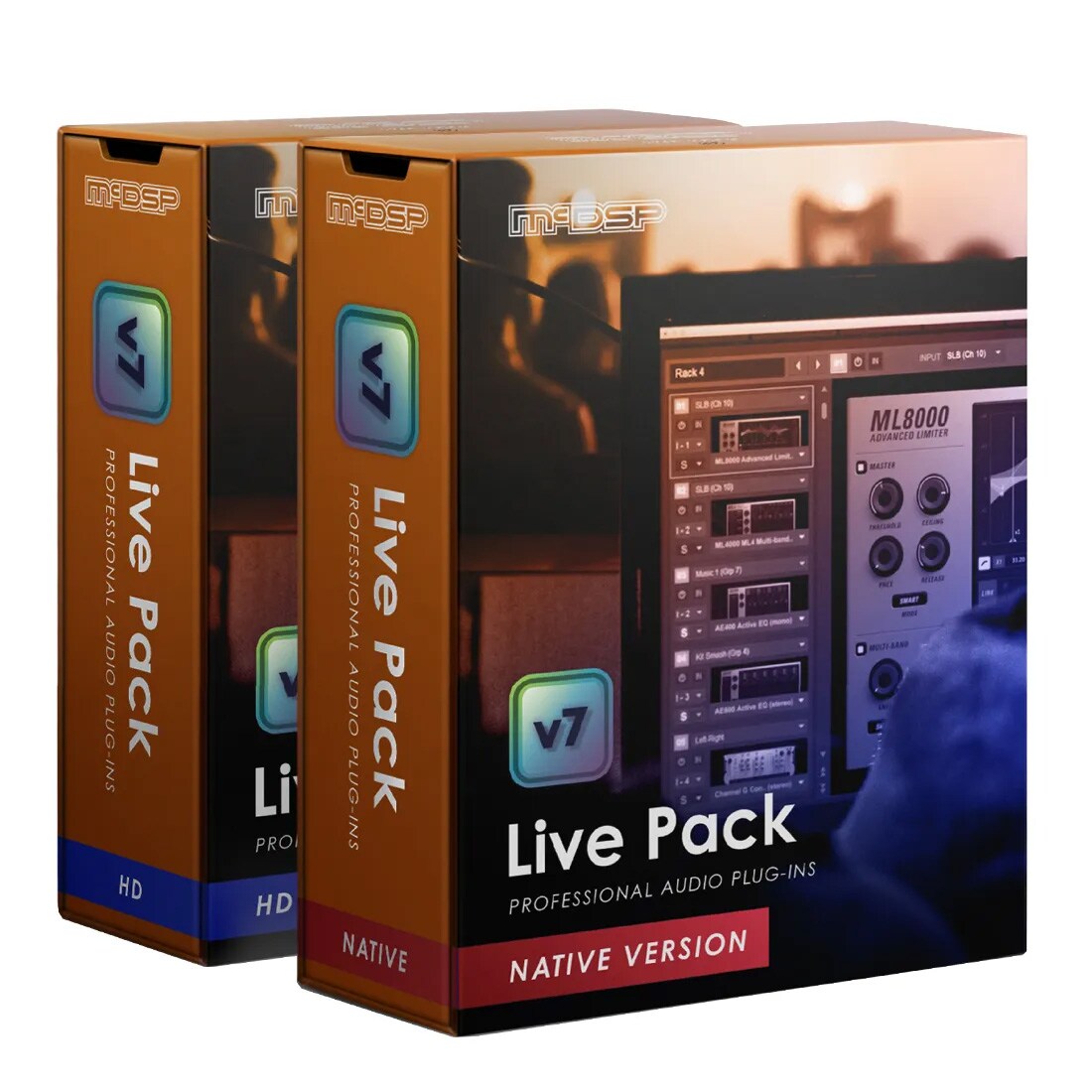 Pro Tools HDシステムにおいて、定番といわれるほど世界中のエンジニアに愛用されるMcDSPのプラグイン。 その"グリーン色"のプラグインの人気は、スタジオグレードのサウンドと能力、使い勝手をライブ・システムに持ち込んだAvid VENUEシステムにおいても同じです。 McDSPのHDプラグインは(Synthesizer Oneを除いて)全てグリーン VENUEへ完全に対応しています。 LIVE PACK IIは、AAX DSPフォーマットのAvid VENUEシステムにおいて最適なプラグイン12種類を収録したお得なバンドルです。6034, 6050, AE600, Channel G, DE555, EC-300, FutzBox, ML4000, ML8000, SA-2, NF575, NR800が収録されています。