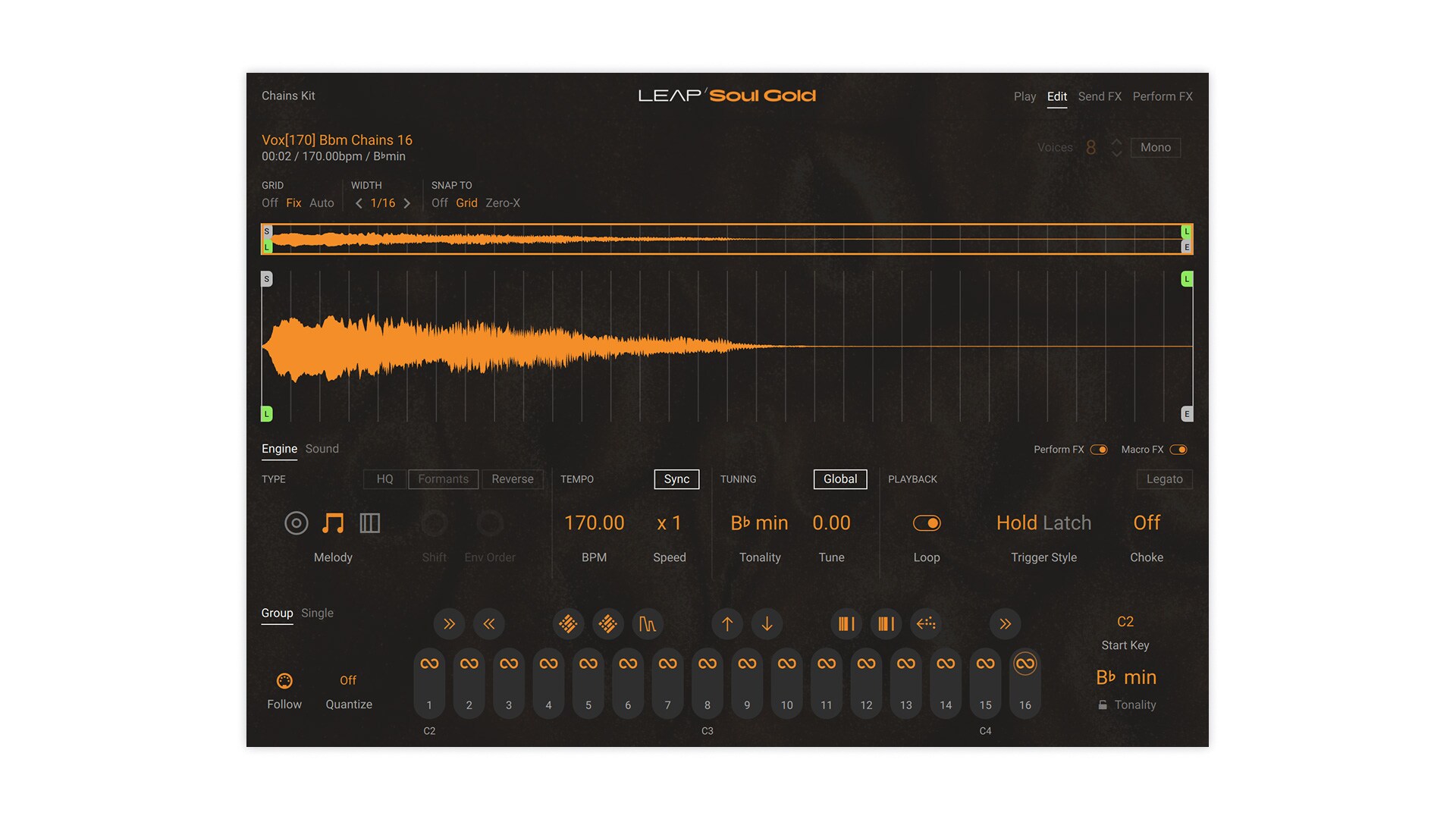 Leap is a new portal for bold ideas and unexpected sounds. Twist pitch, change speed, and shred loops—all with the press of a key. Playful performance effects foster inspiration and serendipitous discoveries, providing a smooth, flexible production experience. Each Leap Expansion is a colorful gateway to new genres, textures, and sound palettes. A world of undiscovered sounds awaits.