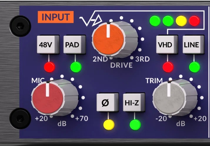 VHDは Variable Harmonics Driveの略で2次倍音から3次倍音の付加を連続可変でコントロールしサウンドに”カラー”をつけることができます。