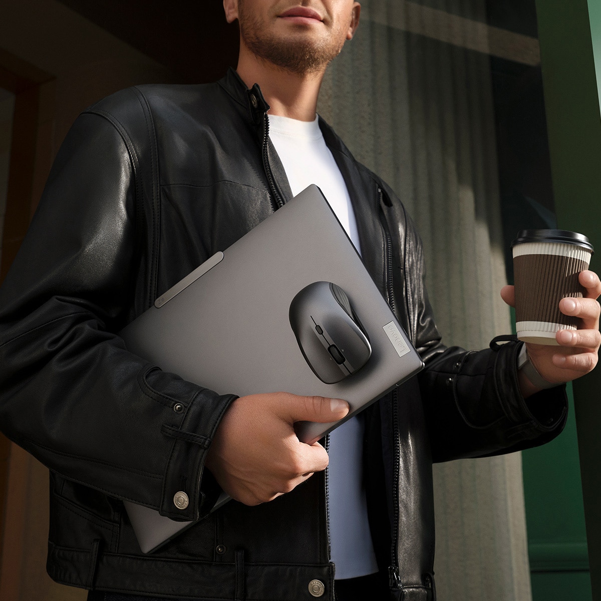 付属の吸着式マグネットベースをノートPCに貼り付け、マウスをセットするだけで簡単に持ち運び可能。マグネットベースには再利用できる粘着面を採用しており、繰り返し貼り直しができます。マグネットと2本のロックピンがマウスをしっかり固定し、落下の心配もありません。