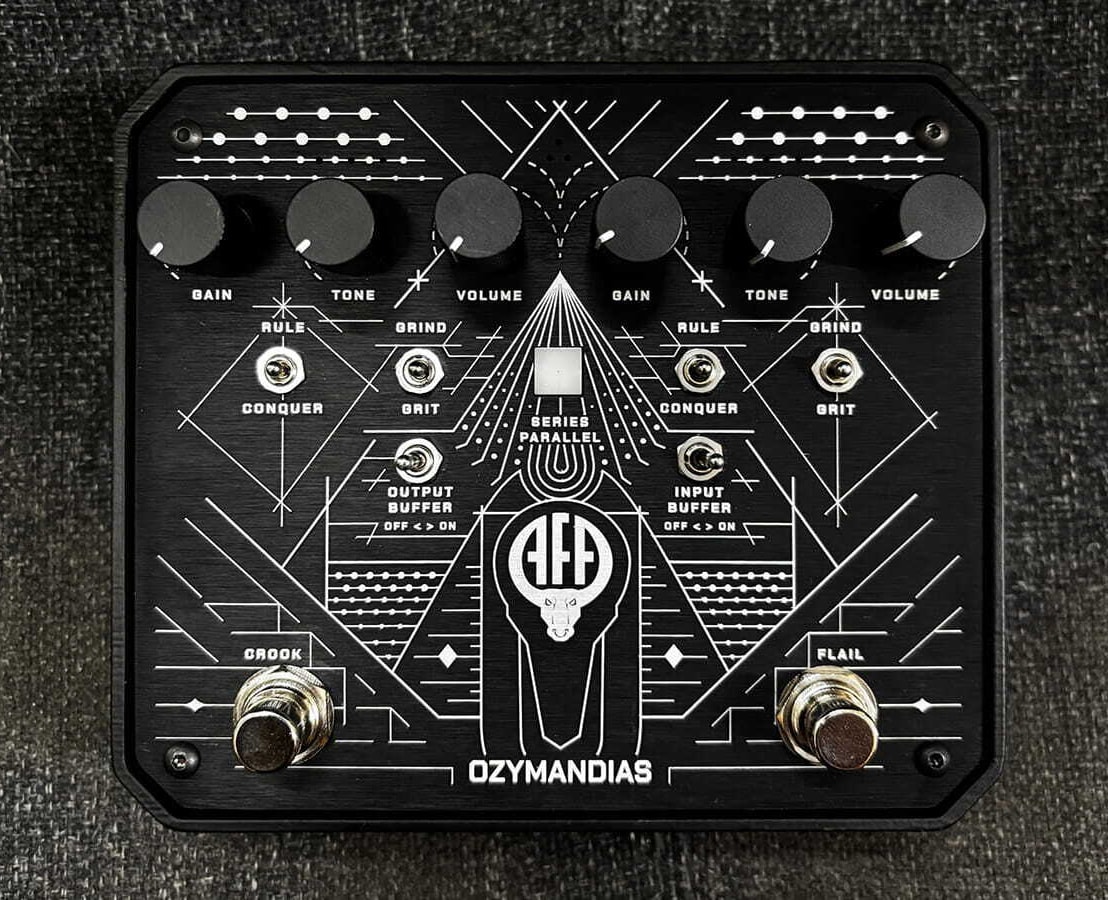 Ozymandiasは非常に多機能で柔軟な音作りが可能な、デュアルオーバードライブ/ディストーションペダルです。一見すると、Ozymandiasは2つの独立したオーバードライブ回路を搭載したシンプルなスタックオーバードライブでありながら、それぞれ異なるキャラクターのサウンドを持っています。クリーンブーストから激しいクランチサウンドまで、幅広い歪みを作り出すことが可能で、あらゆるニーズに対応することができます。