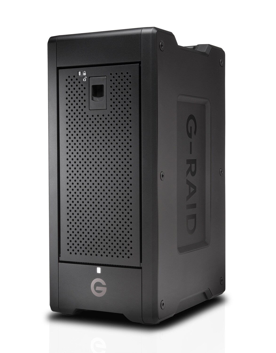 Thunderbolt 3/USB-C対応の8ベイRAIDストレージ「G-RAID SHUTTLE 8」。ハードウェアRAID対応で、RAID 0構成時には最大読出速度1,900MB/s/書込速度2,000MB/sの高速性能を発揮。4K/8K映像編集などの重い作業にも頼れる力強い存在です。耐久性・信頼性にも配慮された設計で、クリエイターやプロ用途に最適なストレージです。