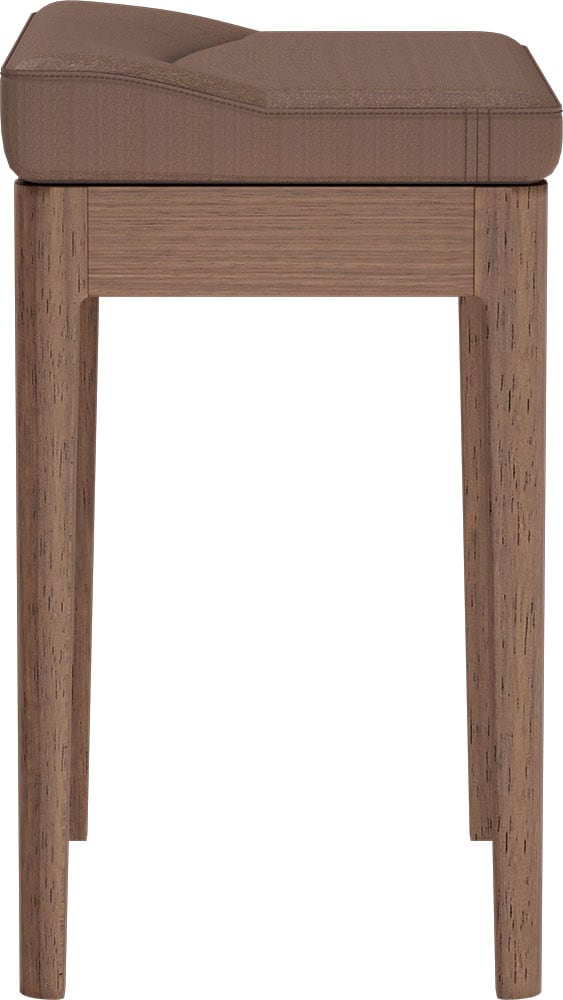 付属のKIYOLA専用椅子は、人間工学に基づき座り心地を徹底的に追求するカリモク家具のこだわりが詰まっています。座面には高密度ウレタンを使用し、ピアノ演奏時特有の浅掛けの姿勢でも体圧を分散し、体への負担を軽減。深く掛けた時にも座骨を起こす形状を採用し、長時間の演奏も快適です。
