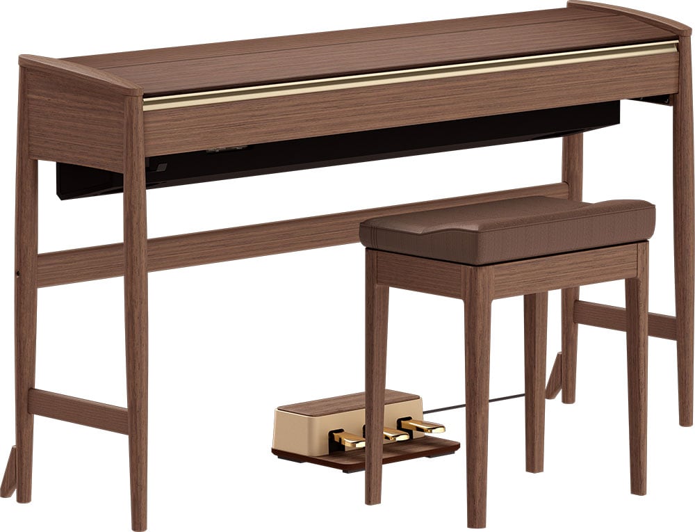 ローランドと1940年創業の日本最大手家具メーカー「カリモク家具」とのコラボレーションにより誕生。豊かな音と柔らかなフォルムで住まいに美しく溶け込みます。天然木のキャビネットに合わせて調整されたあたたかみのあるたピアノ音と、PHA-50ハイブリッド鍵盤と高精度のセンシングにより、グランドピアノのような弾き心地を実現しました。