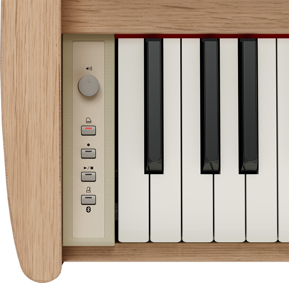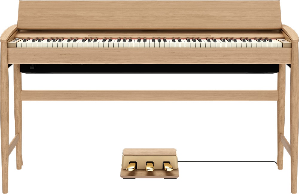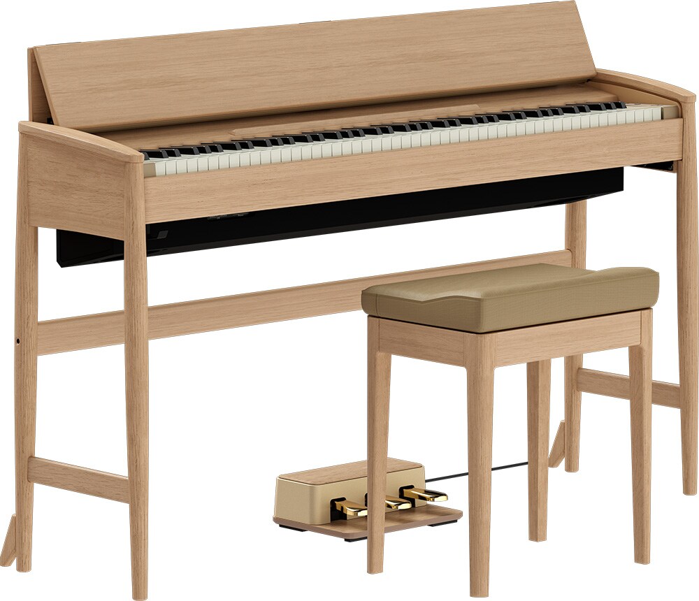 ローランドと1940年創業の日本最大手家具メーカー「カリモク家具」とのコラボレーションにより誕生。豊かな音と柔らかなフォルムで住まいに美しく溶け込みます。天然木のキャビネットに合わせて調整されたあたたかみのあるたピアノ音と、PHA-50ハイブリッド鍵盤と高精度のセンシングにより、グランドピアノのような弾き心地を実現しました。