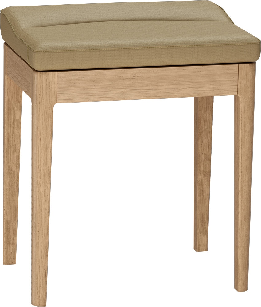 付属のKIYOLA専用椅子は、人間工学に基づき座り心地を徹底的に追求するカリモク家具のこだわりが詰まっています。座面には高密度ウレタンを使用し、ピアノ演奏時特有の浅掛けの姿勢でも体圧を分散し、体への負担を軽減。深く掛けた時にも座骨を起こす形状を採用し、長時間の演奏も快適です。