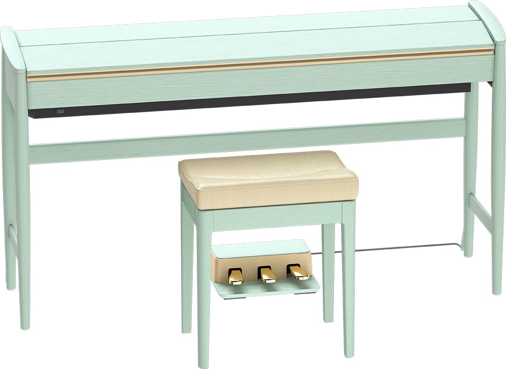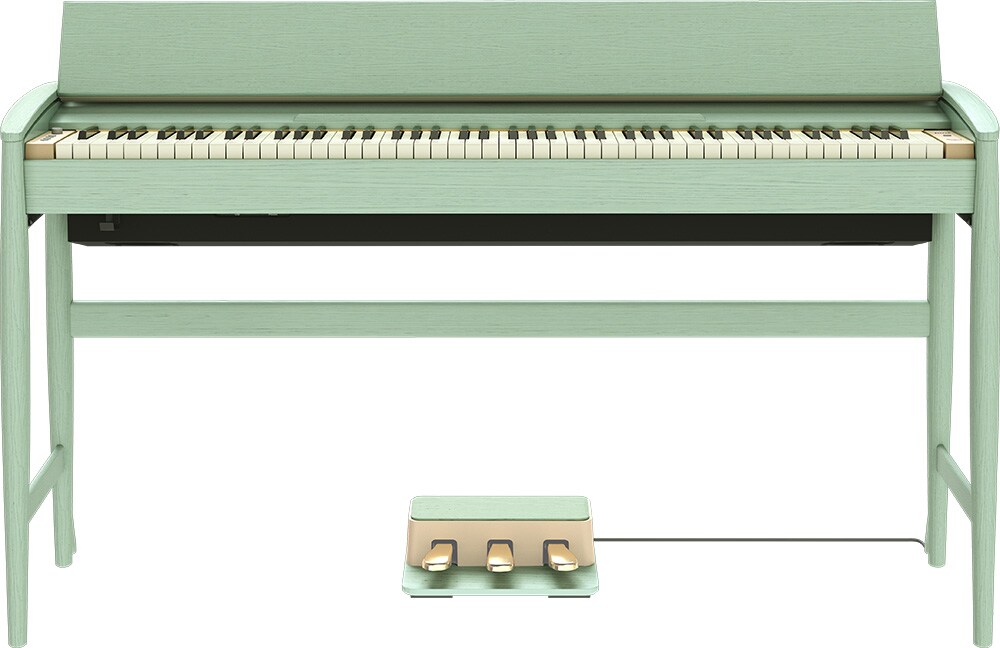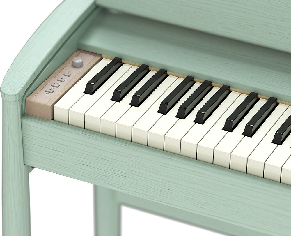 ローランドと1940年創業の日本最大手家具メーカー「カリモク家具」とのコラボレーションにより誕生。豊かな音と柔らかなフォルムで住まいに美しく溶け込みます。天然木のキャビネットに合わせて調整されたあたたかみのあるたピアノ音と、PHA-50ハイブリッド鍵盤と高精度のセンシングにより、グランドピアノのような弾き心地を実現しました。