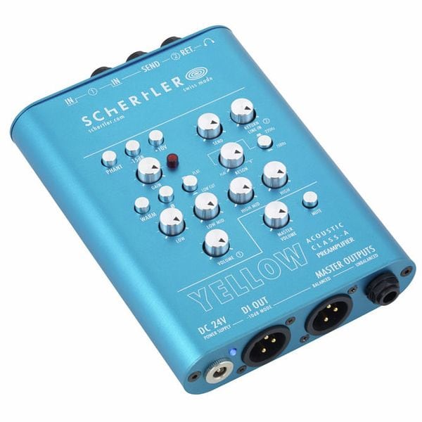 ■The Schertler Yellow Single preamplifier offers a modern design in a lightweight aluminium housing