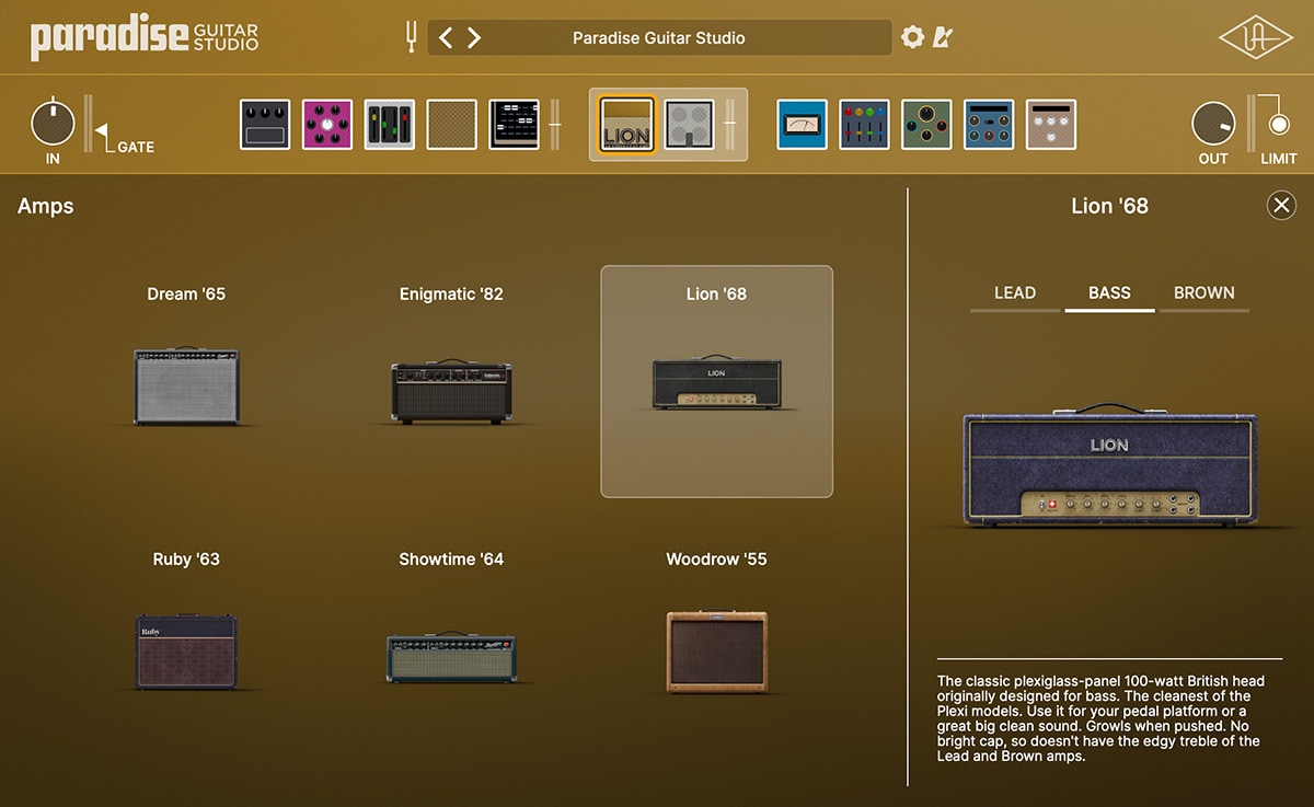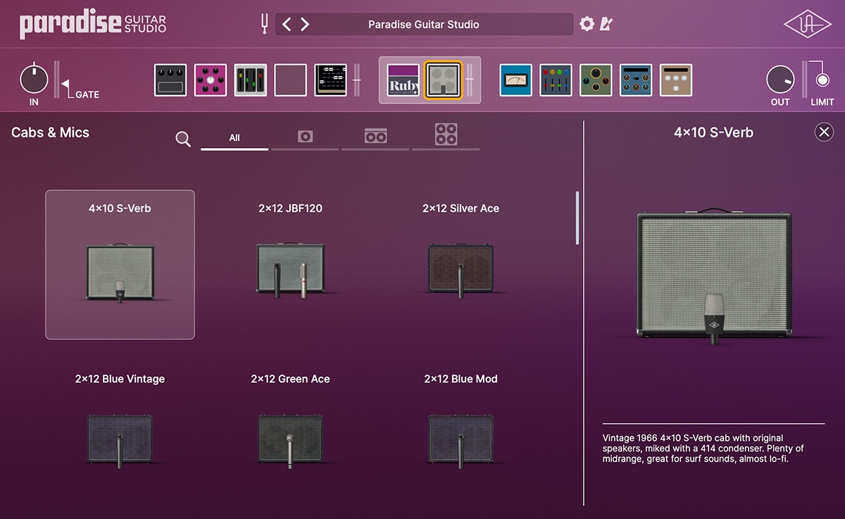 象徴的なアンプ、キャビネット、UAFXに代表されるようなペダル、UADに代表されるスタジオグレードのエフェクトがぎっしり詰まったハイエンドなレコーディングスタジオ全体をあなたに提供します。