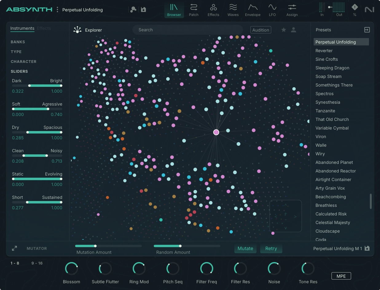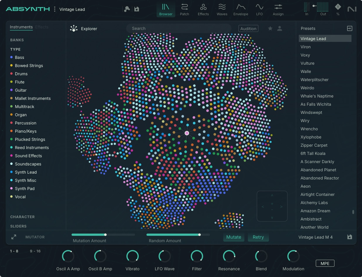 新たなMutatorでは、従来のランダムとは異なる“知的なプリセット生成(intelligent preset generation)”を採用し、変化量・深度のコントロールや履歴管理にも対応。創造性のトリガーとして強力な役割を果たします。