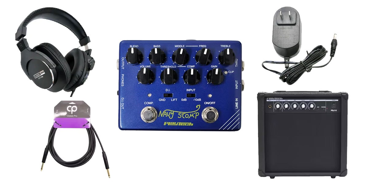 PLAYTECH / BASS JAMMER PBJ10のベースコンボアンプやアクセサリーが付いたお得なセット。Navy Stompは、宅録・ライブの環境を一変させる最強のベースプリアンプ!コンプ、ミッド可変3バンドEQで理想のサウンドを追求。DI、ヘッドフォン、ライン入力、アッテネーターも搭載し、あらゆるシチュエーションに対応します。初心者からプロまで、ベーシストの必携品。