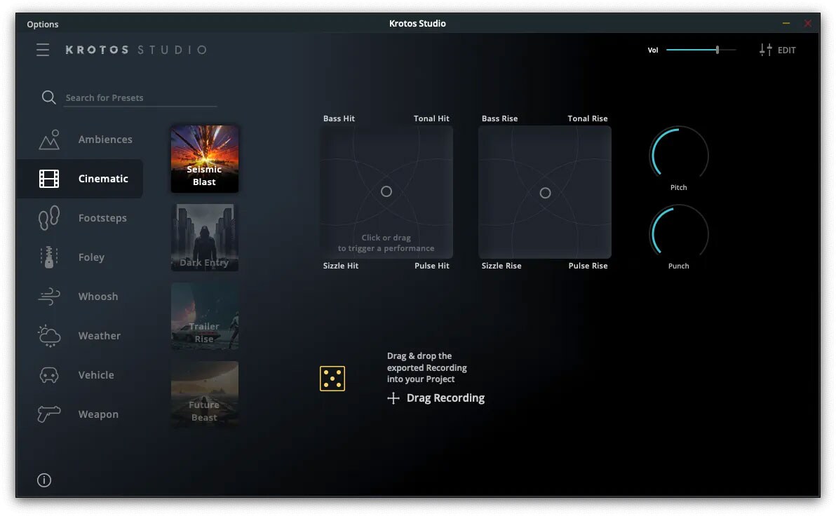 Intuitively shape your sound in real time using your mouse or MIDI controller.