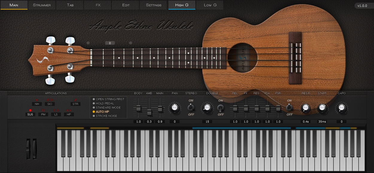 ""AMPLE ETHNO UKULELE"" is designed to be extremely easy to use, while providing all the necessary articulations and functionality.