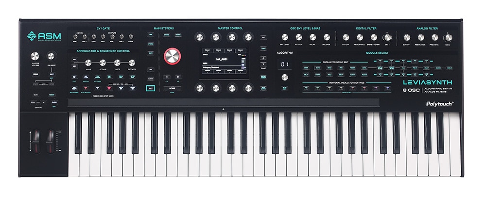 <<2026年2月発売!>>Leviasynth Keyboardは、ASMの新しいハイブリッド・アルゴリズミック・シンセサイザー。16ボイス、ボイスあたり8オシレーター、そしてアナログとデジタルのフィルターを組み合わせたLeviasynthは、まさにサウンドデザイナーにとって夢のようなシンセサイザーです。