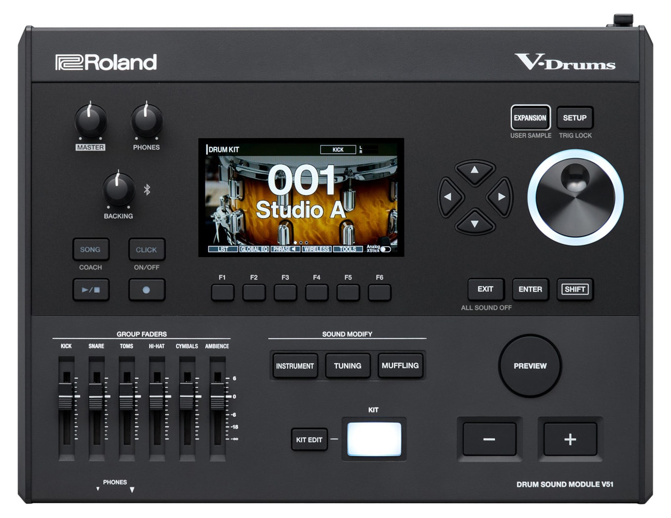 フェーダー:6 (KICK, SNARE, TOMS, HI-HAT, CYMBALS, AMBIENCE)