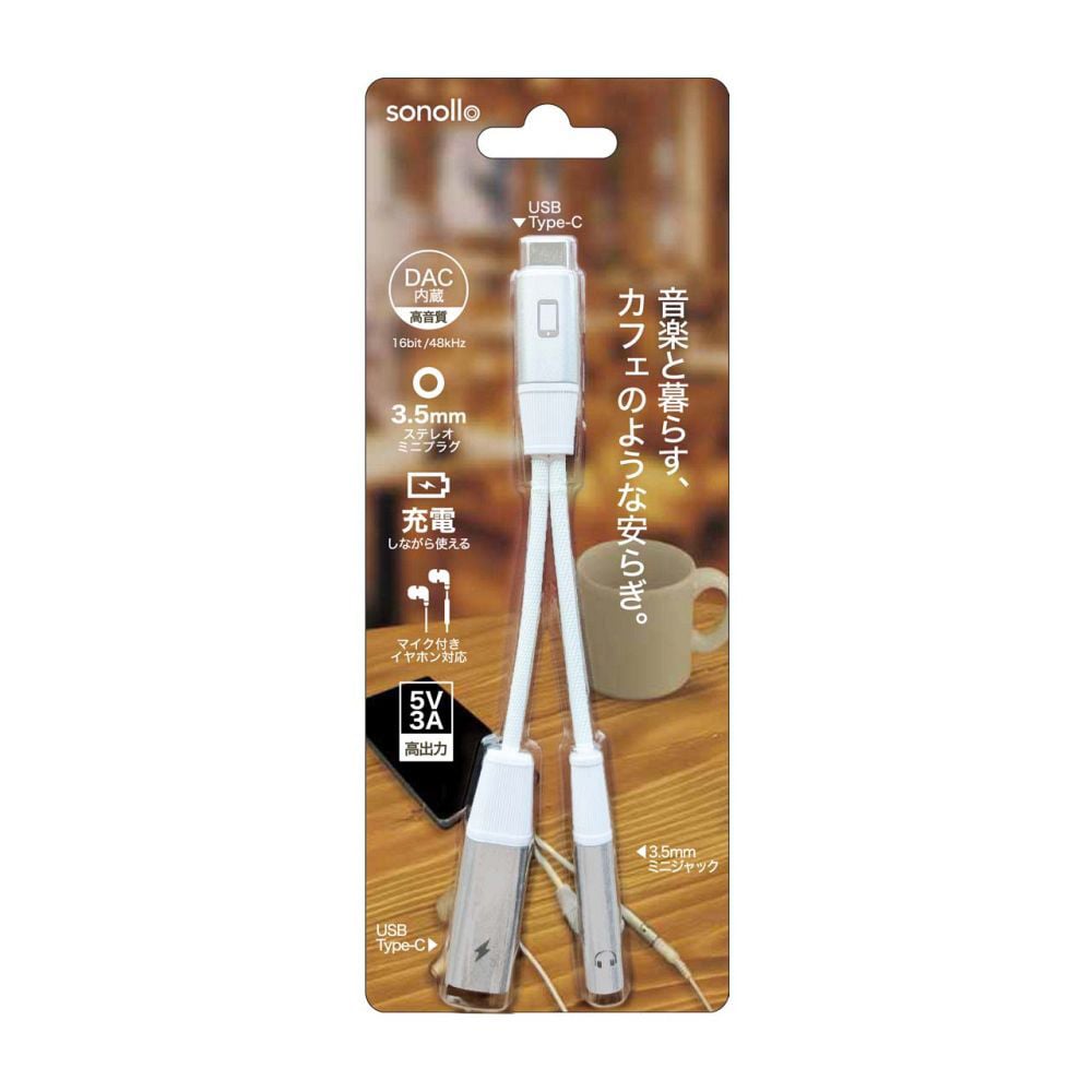 <<Jan 2026 New Product!>>Sonollo is a built-in DAC adapter that converts a USB Type-C port into a 3.5mm earphone jack. In addition to the 3.5mm port, it also features a USB Type-C port dedicated to charging, so you can charge your smartphone while listening to music.