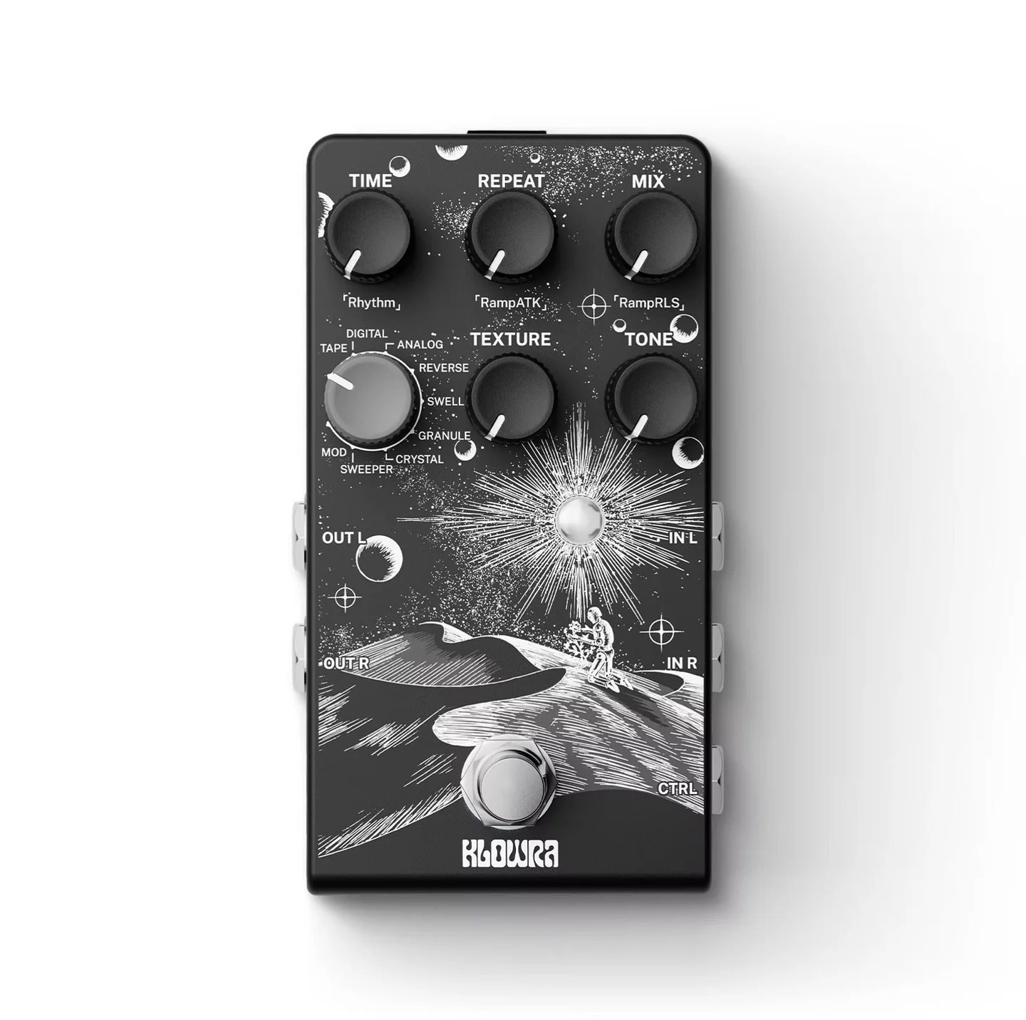 リバース、グリッチ、シマー、スウェル、クリスタルといったモードでは、アンビエントパッドのようなサウンドから悪夢のような揺らぎまで提供いたします。