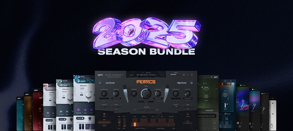 UJAM 2025 Season Bundleは、UJAMが2025年にリリース・展開してきた全13製品をまとめて収録した期間限定バンドルです。エフェクト、シンセ、ベース、ギター、ビート、パーカッション、ピアノまで、現代の音楽制作に必要な要素を網羅的にカバーしており、ジャンルや制作スタイルを問わず、あらゆるクリエイターの即戦力として活躍します。