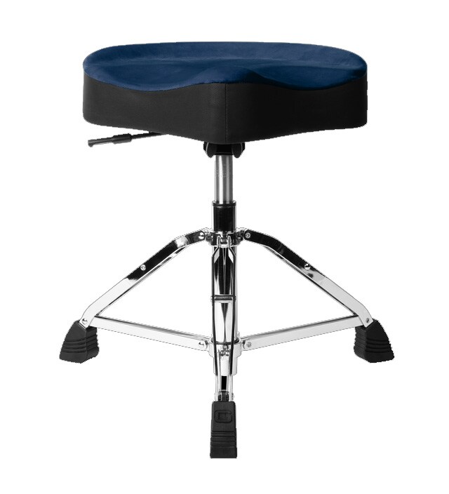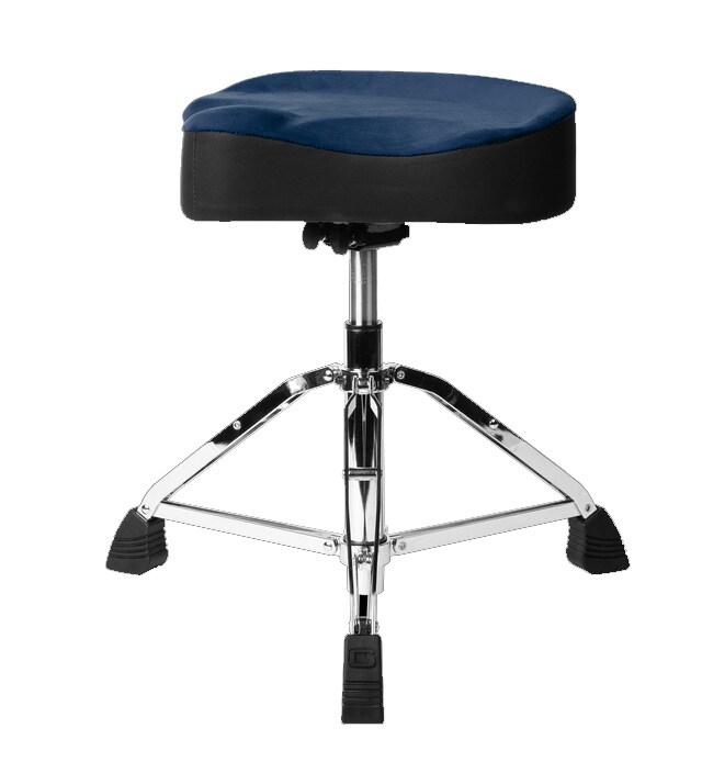Air Glide 空気圧システムにより、18~24インチの高さ調整をスムーズに行え、理想的な演奏ポジションを簡単に実現します。厚みのあるサドル形状シートには、太ももの負担を軽減するエルゴノミックカットを採用。通気性に優れたベロアトップが汗のこもりを抑え、滑りにくく安定した座り心地を提供します。クローム仕上げのダブルブレース三脚ベースと大型ラバーフィートにより、あらゆる床面で高い安定性を発揮。さらに、補強された丸みのある脚部デザインにより、ゴム足の摩耗を防ぎ、長期間の使用にも耐える設計となっています。強度・デザイン・快適性を兼ね備えた、妥協を許さないドラマーのためのドラムスローンです。