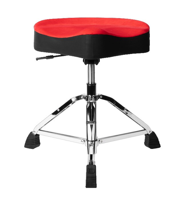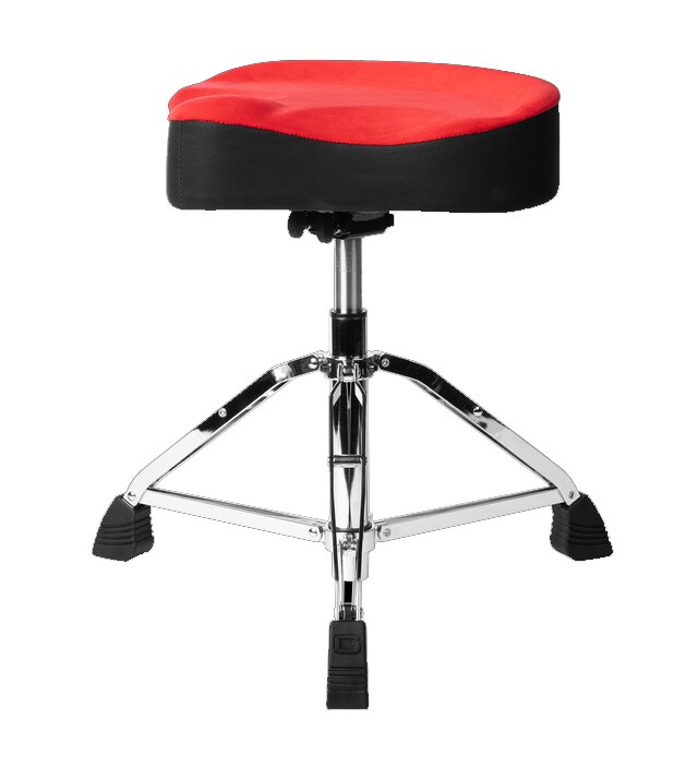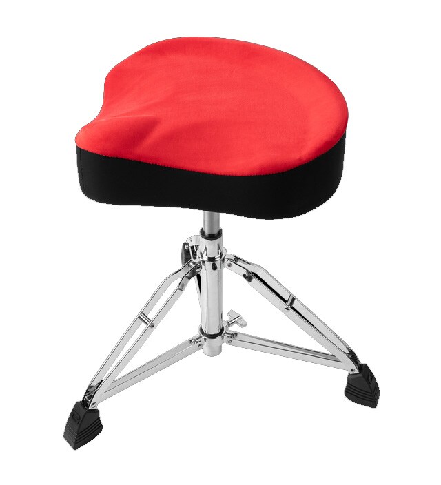 Air Glide 空気圧システムにより、18~24インチの高さ調整をスムーズに行え、理想的な演奏ポジションを簡単に実現します。厚みのあるサドル形状シートには、太ももの負担を軽減するエルゴノミックカットを採用。通気性に優れたベロアトップが汗のこもりを抑え、滑りにくく安定した座り心地を提供します。クローム仕上げのダブルブレース三脚ベースと大型ラバーフィートにより、あらゆる床面で高い安定性を発揮。さらに、補強された丸みのある脚部デザインにより、ゴム足の摩耗を防ぎ、長期間の使用にも耐える設計となっています。強度・デザイン・快適性を兼ね備えた、妥協を許さないドラマーのためのドラムスローンです。