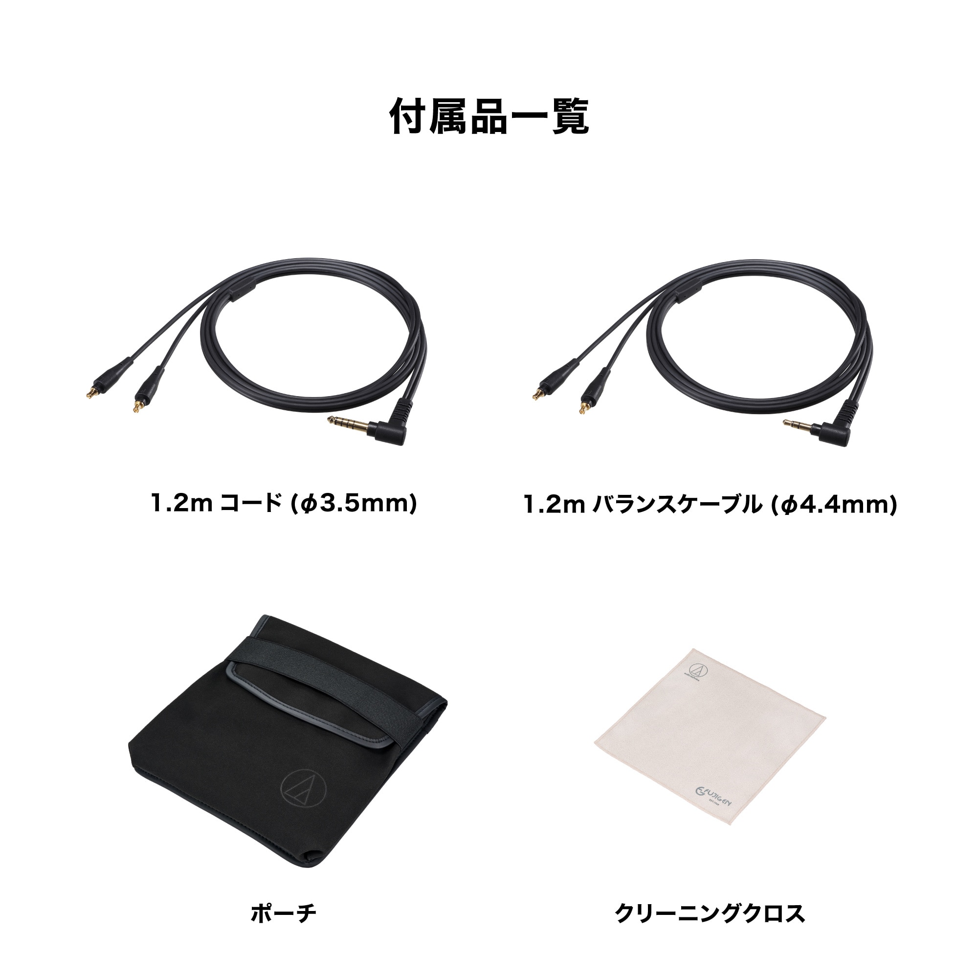 ・Includes a 1.2m balanced cable (φ4.4mm 5-pole plug) and a 1.2m cord (φ3.5mm stereo mini plug) for use with Hi-Res audio players and balanced headphone amplifiers.