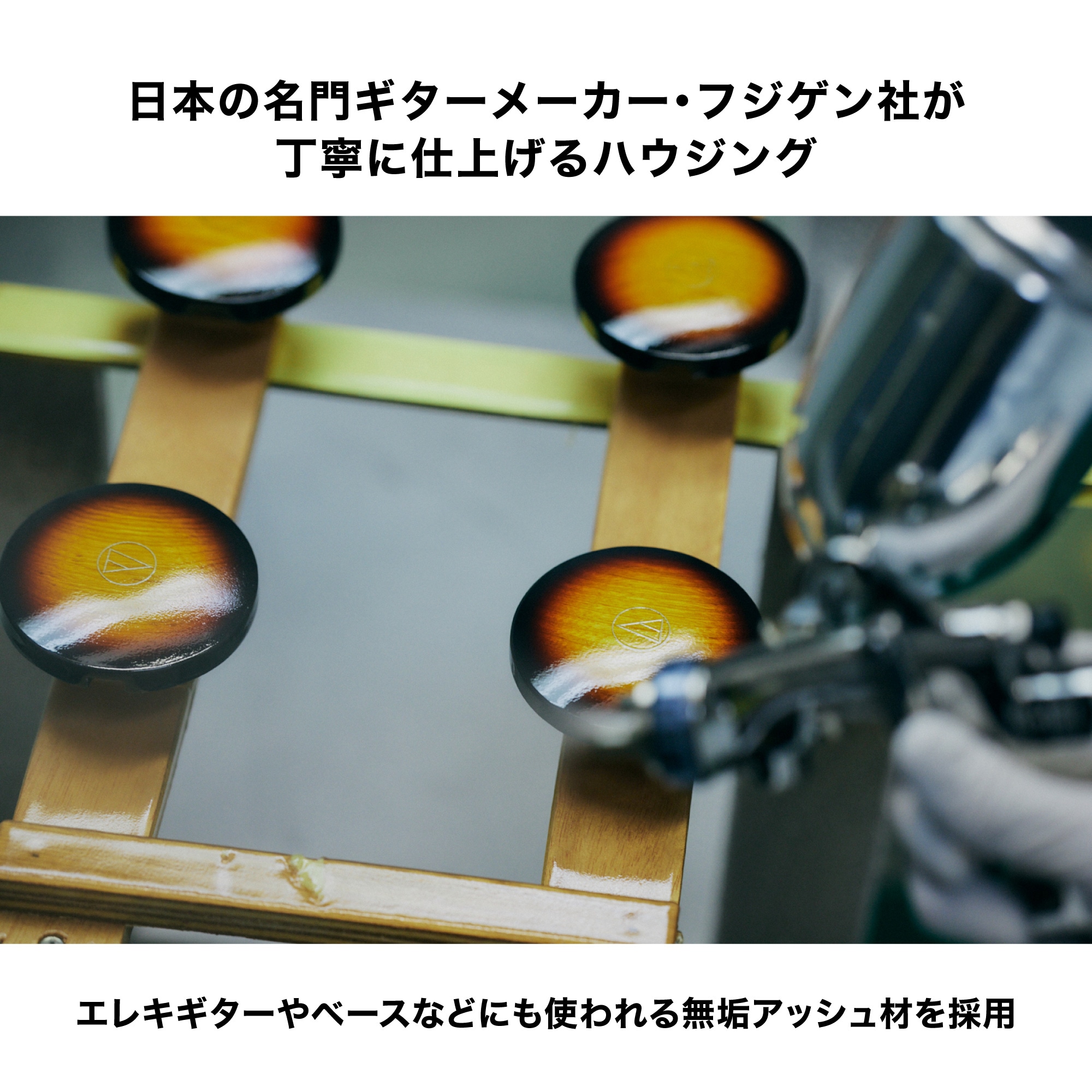 - The housing is made of solid ash, a wood traditionally used for electric guitars and basses and familiar to players. The housing takes advantage of the characteristics of solid ash wood and meticulous tuning to accurately reproduce clear contours, rich low frequencies, and even the subtle nuances of sustain.