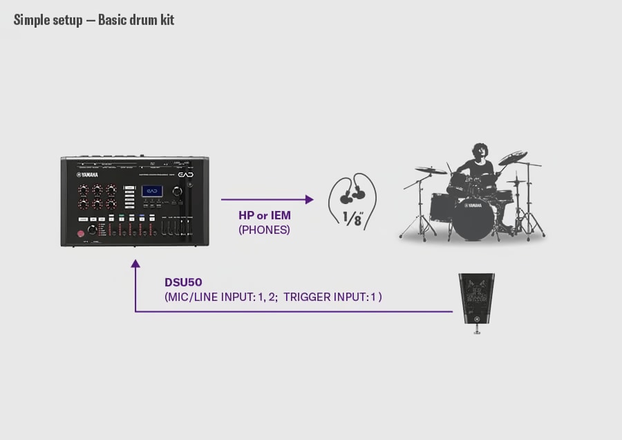 EAD50はこれまでのドラマーの悩みを解決する、最もシンプルでスマートなドラムPAソリューションです。