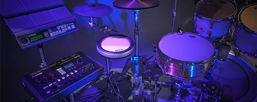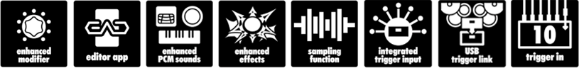 また、パッドやトリガーを接続することで、追加のサウンドを重ね、アコースティックとエレクトロニックを融合させたハイブリッドセットを手軽に構築することができます。