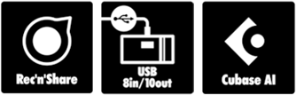 付属のCubase AIソフトウェアを使用してマルチトラック録音や編集を行えるほか、配信ソフトウェアに直接接続してライブ配信することも可能です。