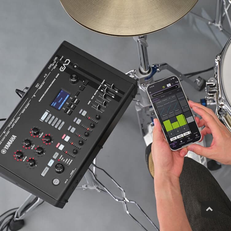 エディターアプリ『EAD Touch』を使えば、お手持ちのスマートデバイスからタッチスクリーンで音色エディット、マイクやトリガーのセッティングなど、グラフィカルな画面で直感的な編集が可能です。また、Bluetooth接続に対応し、機器本体に固定されることなく手元で操作でき非常に便利です。