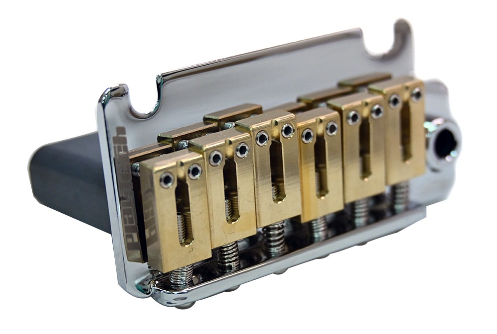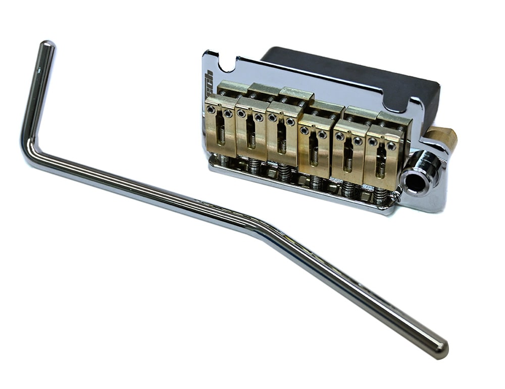 ブラスサドルと40mm厚スチールブロックを採用した、ギター用トレモロユニット。重厚なスチールブロックによる伸びやかなサステインに加え、ブラスサドル特有の艶やかで豊かな倍音成分がサウンドに深みを与えます。現代的な演奏性に適した10.8mmピッチを採用し、ストラトキャスタータイプ等のアップグレードに最適。低予算でハイエンドモデルのような音質改善と高級感を両立できるコスパモデルです。